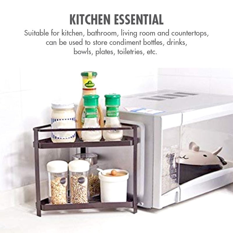An organized kitchen brings more creativity and inspiration when cooking meals for the family. This 2 Tier Kitchen Corner Rack – Small from Houze ensures that your countertop is clean and kitchen essentials are correctly organized. It is made of high-quality Carbon steel that is sleek. durable and sturdy to carry even heavy items.
