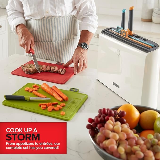 Modern Innovations Smart Cutting Boards and Knife Set, Self Cleaning Cutting Board & Knives Holder, Color Coded Cutting Board Set With Knives, All-In-One Cleaning Knife and Cutting Board Set