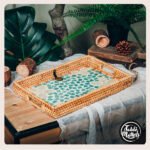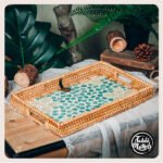 Every detail. from the glistening guppies fashioned from the gentle touch of Mother of Pearl. whispers tales of luxury. luck. and good health. It’s not just a tray; it’s a gateway to experiences filled with elegance and mindful living. Navigate through your nights. cradling an eco-friendly masterpiece that mirrors your dedication to a harmonious existence. balancing style and substance with grace. Let the ORNATE Midnight Guppy Rattan Serving Tray be the guardian of your night. casting spells of charm and wonder at every gathering.