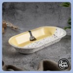 Are you worried about modern kitchen appliances? Fear not! This saucer isn’t just about looks; it’s designed for today’s kitchen. Whether you need to pop it in the microwave or the oven or wish to clean it in a dishwasher. it’s crafted to handle all. thanks to its robust construction. Its shiny texture offers more than an appealing aesthetic; it ensures easy cleaning and maintenance.